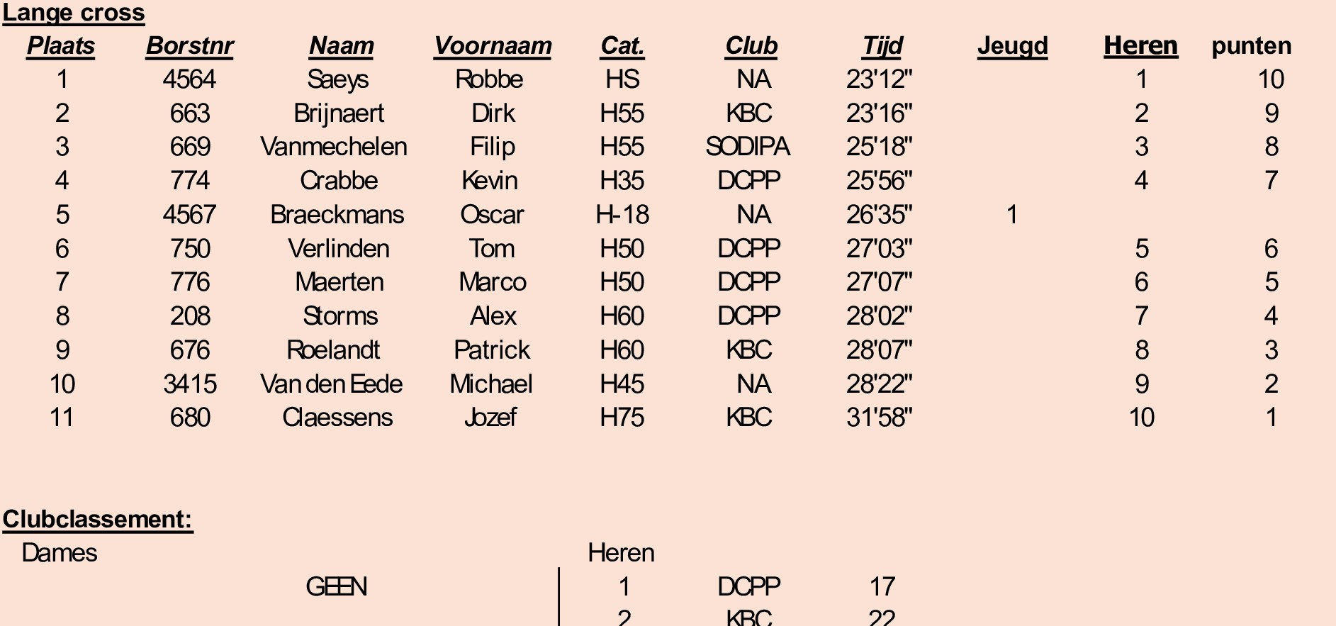 zat 15 nov - CROSS ANTWERP ATHLETICS